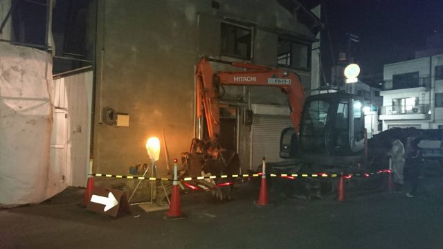 解体終了後、廃材が地中に残ったりしていないか、その下にコンクリートが入っていないか重機で地面を掘り確認します。
